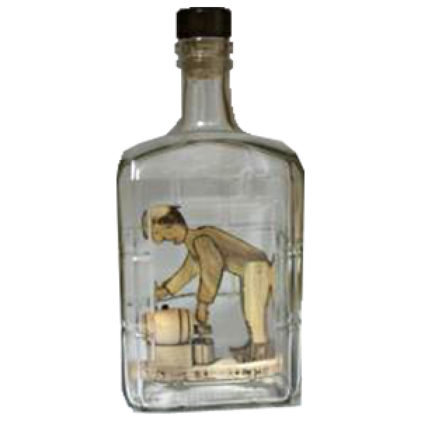 - Outras informações: Garrafa com boneco taberneiro em madeira de carvalho de 12cm de altura no interior.