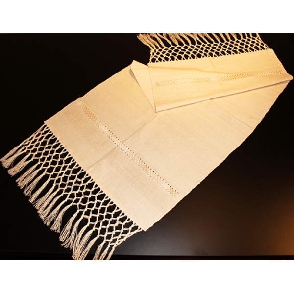 - Outras informações: Centro de mesa em linho caseiro. Tecelagem manual com franja em linho.