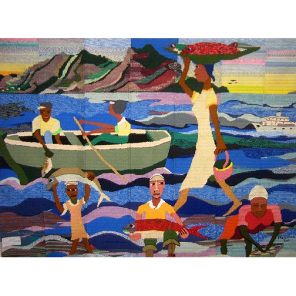 - Outras informações: Tapeçaria em algodão ou lã tingidos artesanalmente simbolizando cenas de pesca, agricultura, mercado e outras em variados tamanhos e tecidos em bandas individuais ou cozidas para formar um motivo.
